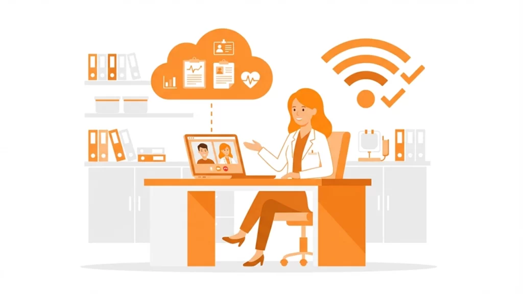 Velocidad recomendada: Un plan empresarial simétrico de 100 Mbps con SLA (garantía de nivel de servicio) es lo mínimo recomendable para un consultorio con 2 o más médicos activos. Para clínicas con múltiples consultorios operando en telemedicina simultánea, evalúa planes de 200 a 300 Mbps con soporte técnico prioritario.